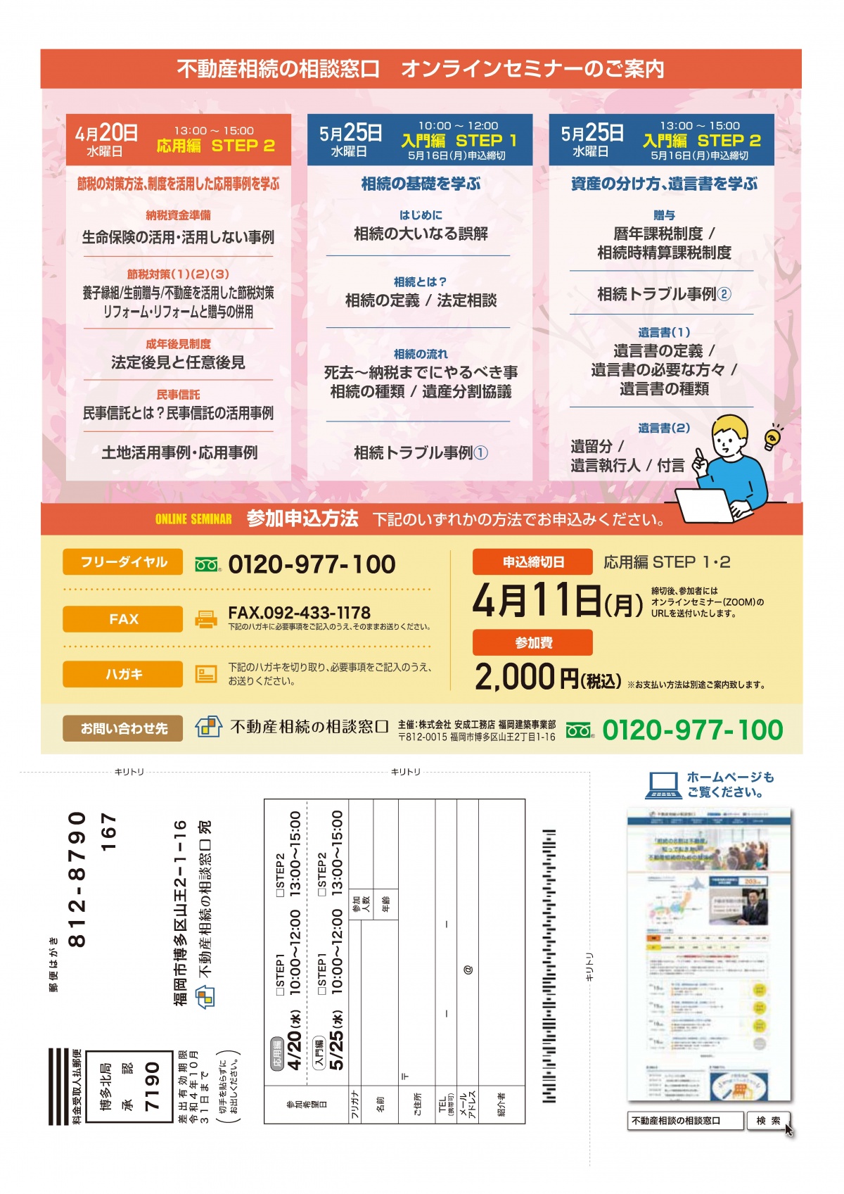 ※オンラインセミナーに移行したため上記HPに記載の日程とは異なる場合がございますが予めご了承下さい。