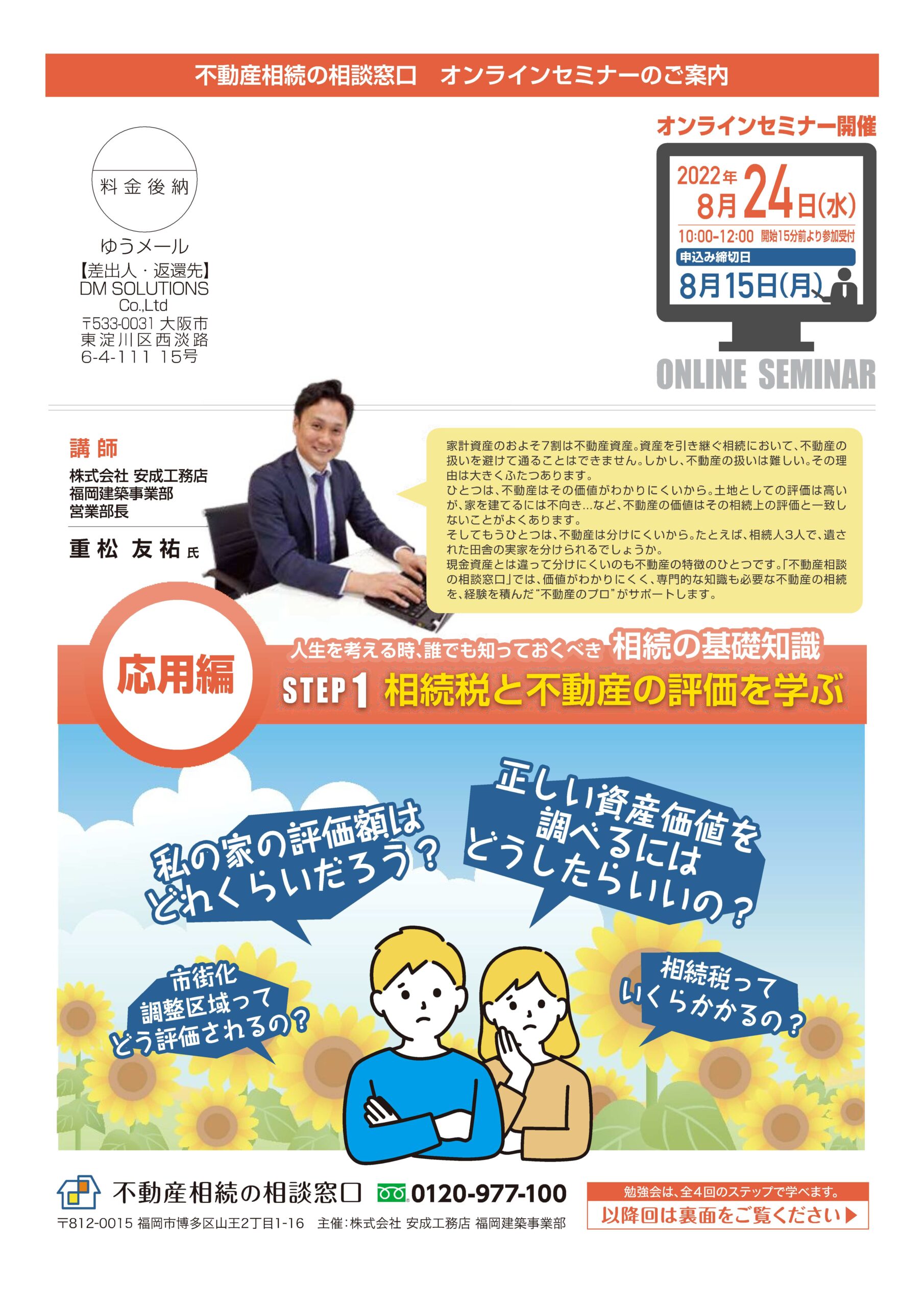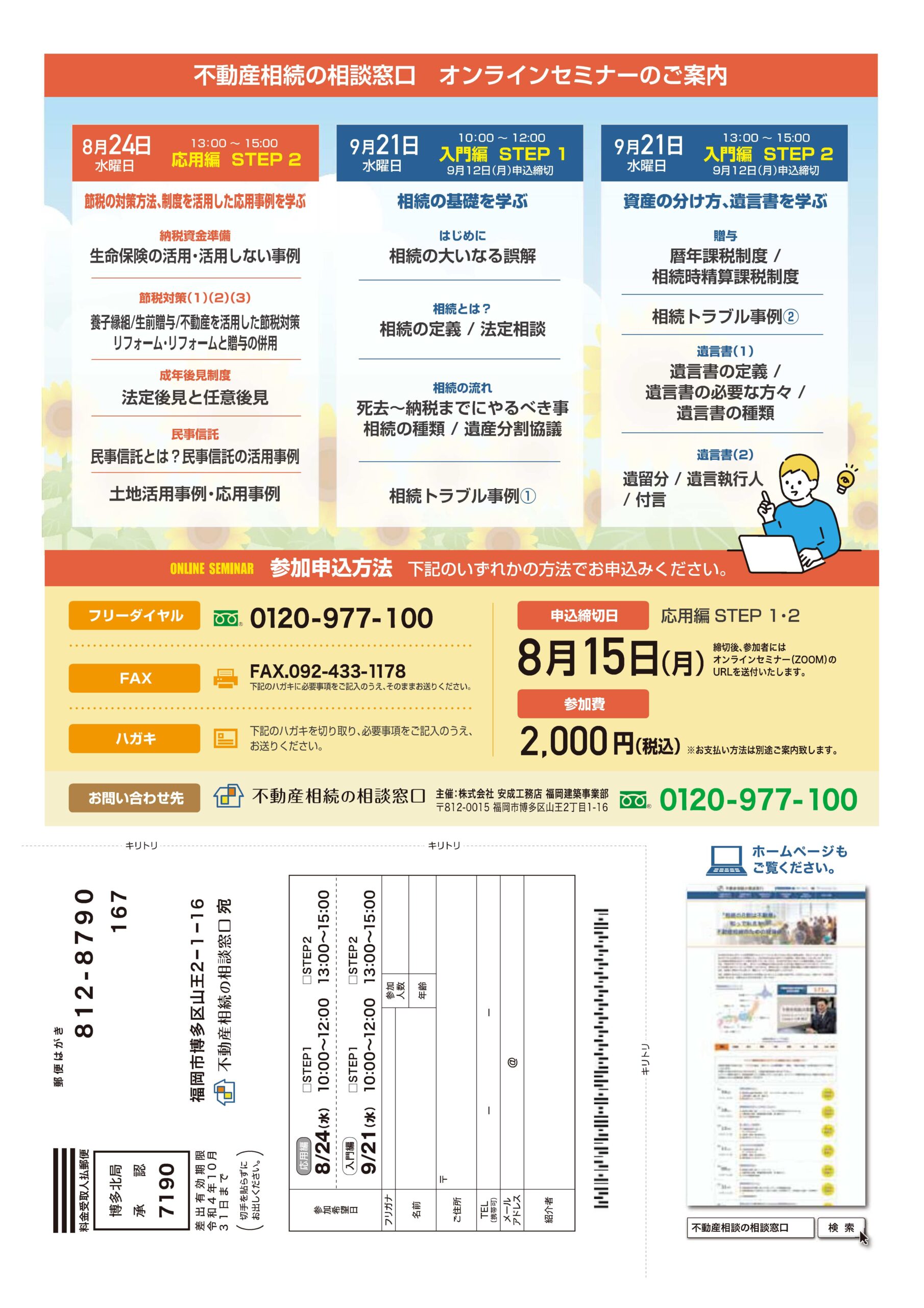 ※オンラインセミナーに移行したため上記HPに記載の日程とは異なる場合がございますが予めご了承下さい。