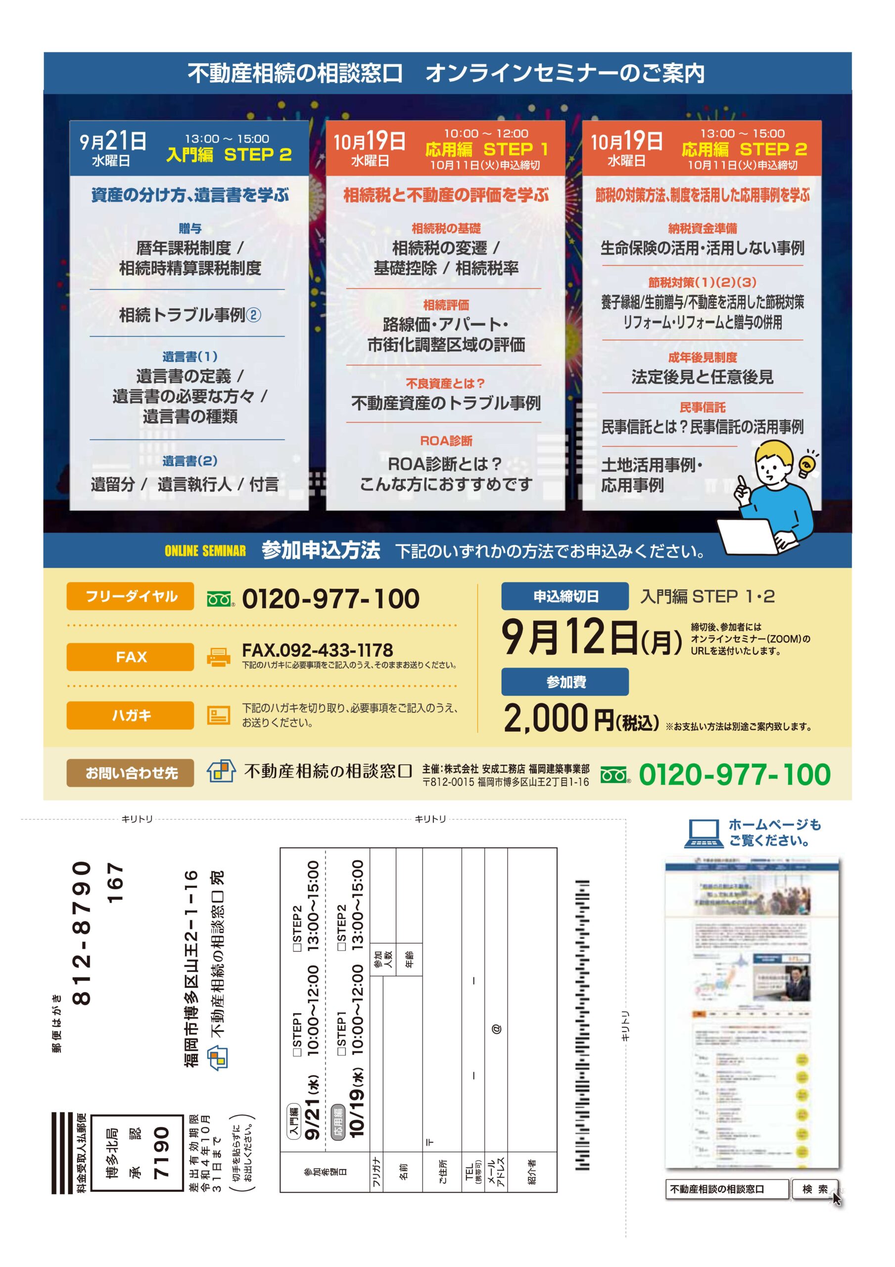 ※オンラインセミナーに移行したため上記HPに記載の日程とは異なる場合がございますが予めご了承下さい。