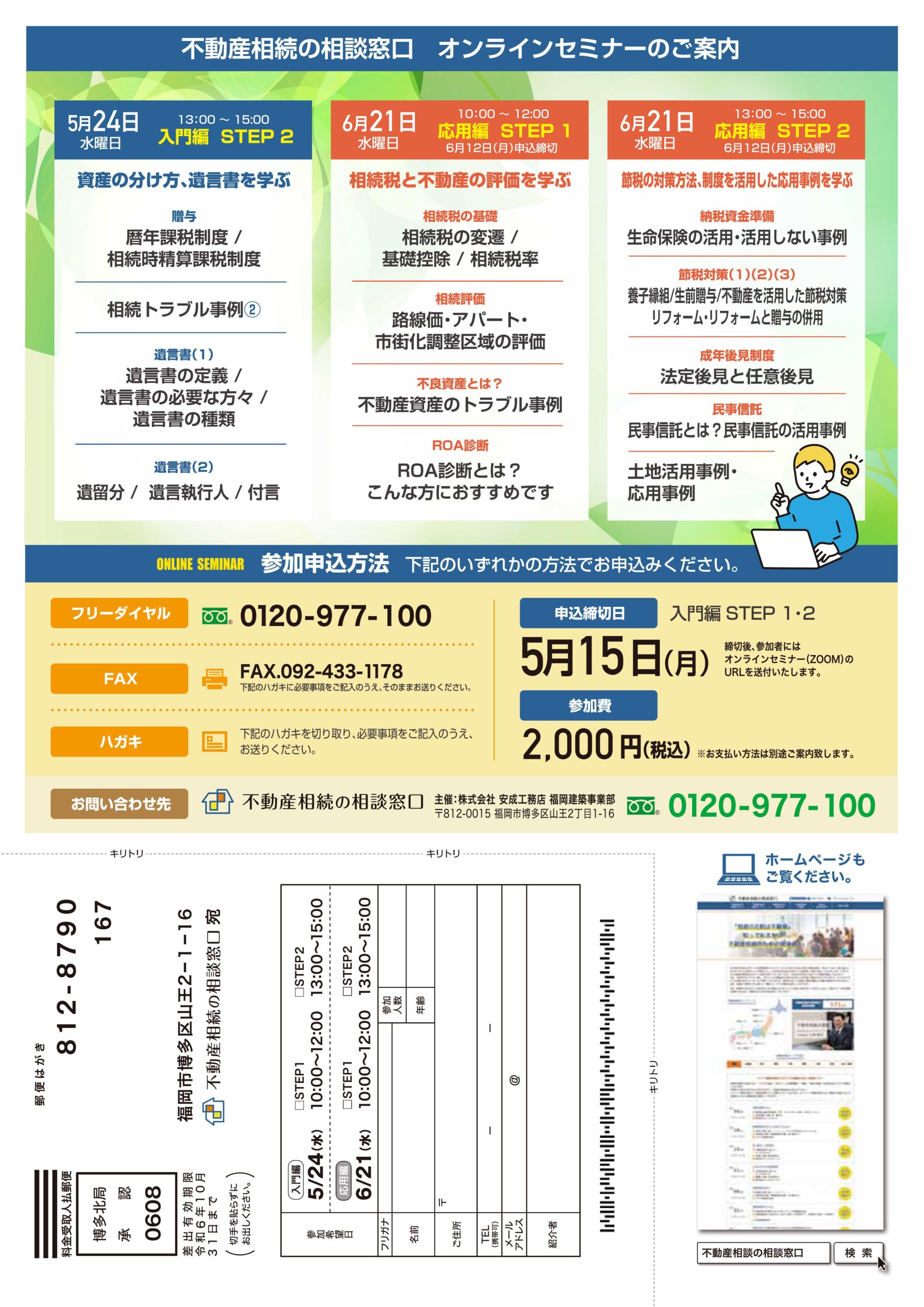※オンラインセミナーに移行したため上記HPに記載の日程とは異なる場合がございますが予めご了承下さい。